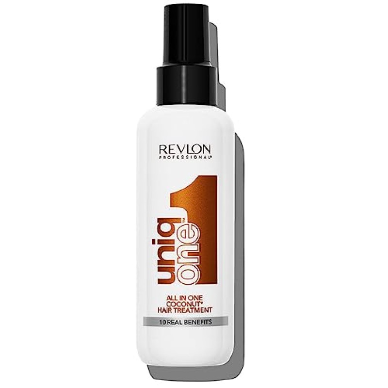 The Revlon Uniq One Coconut All In One Hair Treatment is a luxurious leave-in conditioner designed to revitalise all hair types with an indulgent coconut fragrance. This innovative spray treatment offers ten essential benefits in one solution, enriching your hair with silky smoothness and enviable body. Its lightweight, non-greasy texture delivers frizz control, intense shine, and heat protection while safeguarding colour vibrancy with advanced UVA and UVB filters. Enriched with silk amino acids and next-generation silicones, it penetrates the hair to repair dryness and damage, leaving strands soft, manageable and beautifully nourished. Ideal for use on both damp and dry hair, it provides a sensorial experience with a delicate tropical scent while reinforcing hair’s natural resilience and luxurious finish.